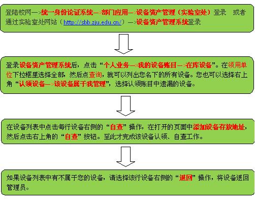 按照《浙江大学关于开展仪器设备资产自查落实管理责任工作的通知》的要求,我系已经将所有设备分配到相关老师的设备资产账户下。请各位老师按照以下流程尽快完成设备的认领、自查。