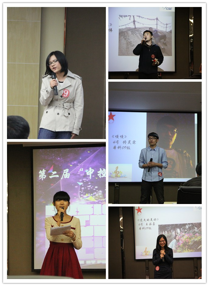 2012年12月16日晚18:30,第四届“中控杯”控制科技文化节闭幕式暨中控之声歌手大赛在玉泉校区永谦活动中心B座一楼报告厅拉开帷幕。中控集团工会主席、中控信息公司副总经理章全先生,浙江大学党委研工部吕淼华部长,校团委刘艳辉书记,控制系系主任苏宏业教授、党委书记王慧教授,系副主任张光新教授,团委书记丁立仲老师以及团委副书记徐贞老师参加了本次闭幕式。闭幕式由控制系党委书记叶松老师主持。