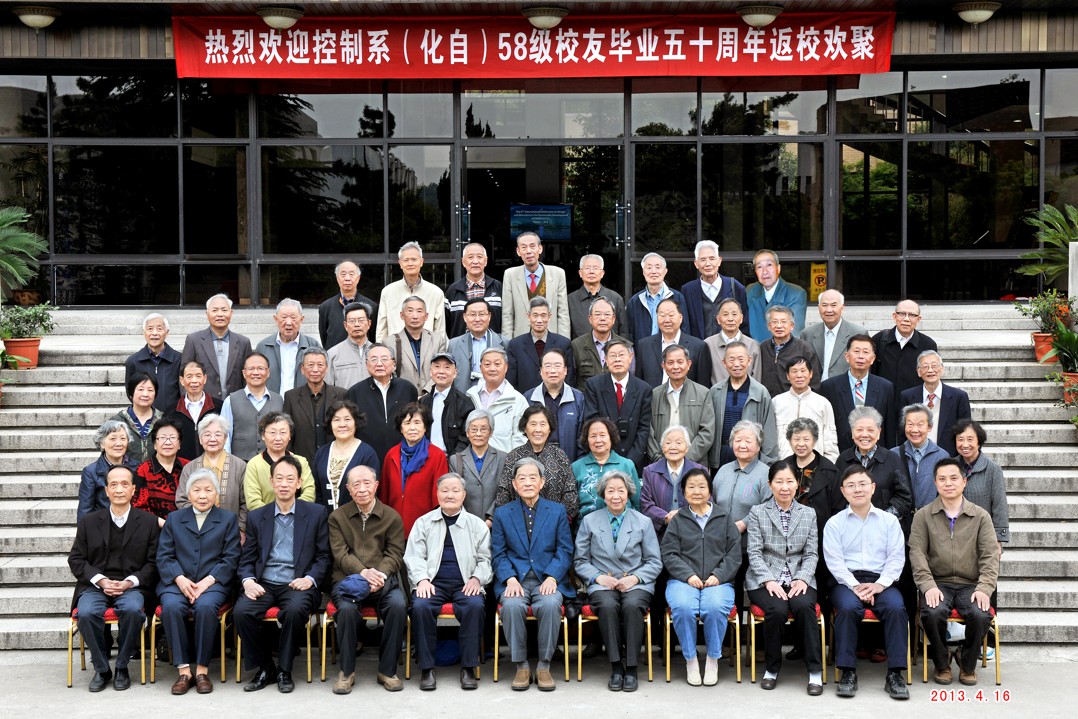 控制系“风雨五十年 一生浙大情”的系列校友活动已经进行到第三年,2013年4月15日-18日,控制系58级两个班的70余位校友相聚求是园,相携重走校园路,畅叙同窗与师生情谊,听取了关于学系和母校近年发展情况的介绍。