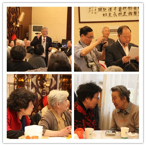 师生茶话会上背景音乐响起,伴着《毕业歌》、《莫斯科郊外的夜晚》,师生喜悦的目光流连在屏幕上那些老相片,互相提醒着、满怀默契地回忆着那时的情景。校友们在会上朗诵了为这次聚会而作的诗歌、文章,那份对母校和师恩热烈的深情,感染着每一个与会人员。校友们诉说着他们的故事、趣事,表达了种种的祝愿,那份岁月不减的激情传递着强有力的正能量。有一位校友隔天就要去澳大利亚,但是依然赶来参加聚会;有一位校友近年身体欠佳,为了验证自己的身体情况是否能适应长长的旅途,他特地几次从家中往返火车站,还尝试专门乘了一次火车,最后认为可以来杭;有一位同学远从北京赶来但在中途身体不适未能到达,再三叮咛要把自己的相片通过ps 加到合影上。这些细节中包含着点点滴滴的浓浓的情谊,透露着化自58级是个团结友爱的集体,感动了每一位与会人员。亲切的同窗情谊、师生情谊,经历了岁月五十年的沉淀依然那么动人、有力量。