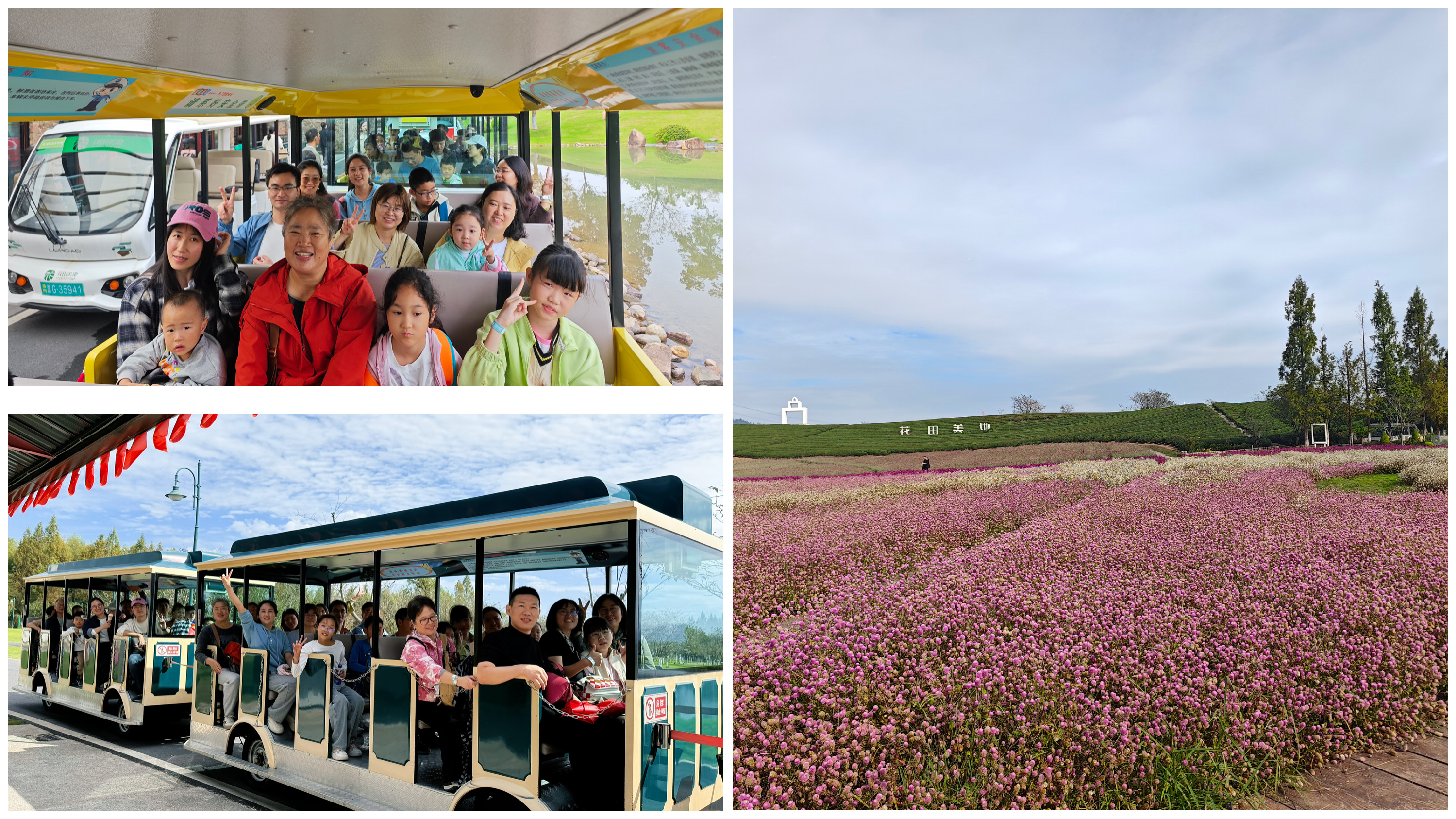 次日,教职工们前往花田美地生态园区,开启秋日赏花之旅。百亩花田内,蛇鞭菊、醉蝶花、柳叶马鞭草等花卉竞相绽放,色彩斑斓的花海如同铺展在大地上的绚丽画卷。大家漫步花径,赏秋景、谈工作、聊生活,不时用相机记录下眼前的美景与同行的欢乐瞬间。园区内的朵朵牧场成为孩子们的欢乐天地。小朋友们兴奋地与温顺的小动物互动,亲手投喂小羊、小鱼和鸽子,清脆的笑声与欢快的脚步声响彻田野,尽情释放童真活力。