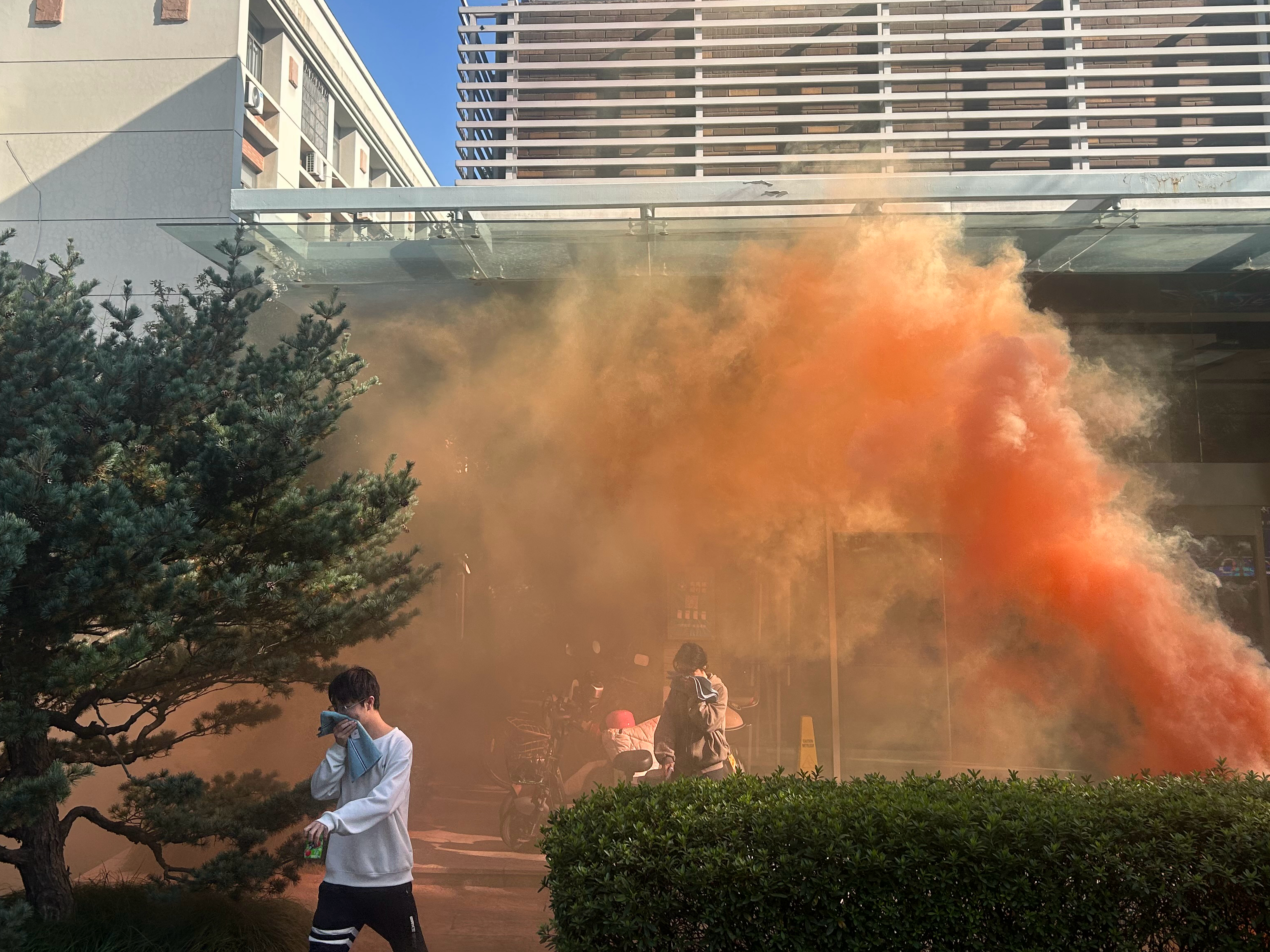 下午2时,设在邵科馆门外空地的现场指挥部发出指令,演习正式开始。工作人员迅速在各大楼通过手动报警器模拟火情发生,消控室接警后迅速启动消防应急响应程序,通过消防广播通知楼内人员紧急疏散。各楼层疏散引导员迅速就位,有序引导师生疏散。楼内师生听到指令后,立即停止工作,妥善关闭水、电、气,做好个人防护,沿疏散楼梯右侧迅速撤离,安全转移到邵科馆门外集合点。引导员确认本楼层人员全部撤离完毕后最后离开。