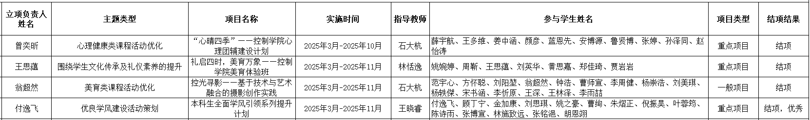 【公示】控制学院2025年SQTP结项公示
